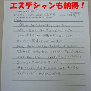 【前回投稿しましたエステティシャンの方の受けた声です】