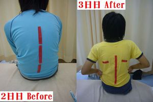 その日から、ソファー使用を禁止して頂いて、寝ることができないので、座りながら骨盤矯正・内臓調整などを行い、施術を3日間連続で行ないました。